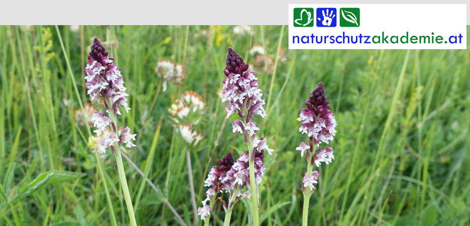 | Info | Ende Juni erstrahlen die Halbtrockenrasen in kräftigen Gelb- und Violett-Tönen. Wir nehmen uns „besondere" Arten genauer unter die Lupe und erkunden deren faszinierende Biologie und Ökologie. Vielleicht finden wir sogar blühende oder bereits aussamende Exemplare der zahlreichen hier vorkommenden heimischen Orchideen, wie das Sommer-Brandknabenkraut (Foto; Neotinea ustulata var. aestivalis). Ausgehend von den Orchideen werden auch aktuelle Aktivitäten zur Erfassung und Erhaltung seltener Arten, sowie Möglichkeiten zur Mithilfe vorgestellt. | |