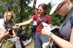 Die bunten Wiesen waren auch für die Schmetterlings- und Pflanzenforscher in der Gruppe eine Fundgrube! Allerlei Besonderheiten, wie etwa der Gelbringfalter, wurden bei dem Kurzbesuch entdeckt. Mehrere Exkursions-Teilnehmerinnen, allen voran Norbert Sauberer und Alexander Mrkvicka, gaben ihre Funde - sehr zur Freude unserer Gastgeber – in der Plattform iNaturalist ein, nicht nur von hier, sondern auch den vorangegangenen Tagen rund um Slavonski Brod. So funktioniert internationaler Austausch gleich noch besser!