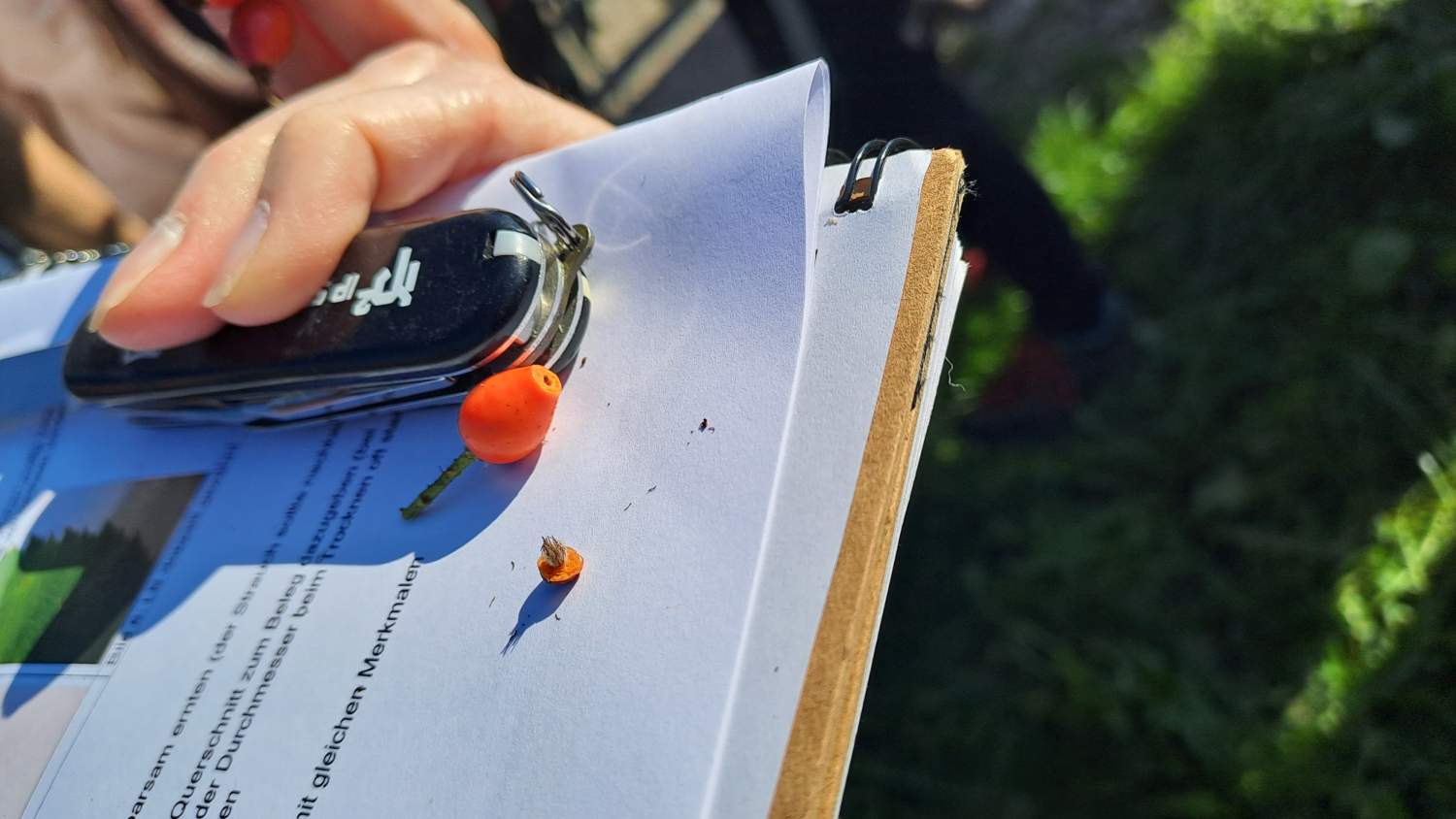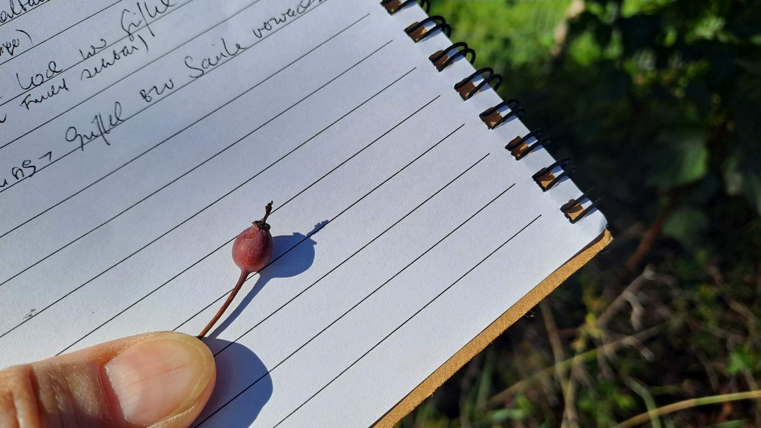 s Bei strahlendem Sonnenschein versammelten sich fast 30 Interessierte in Wien-Siebenhirten, um in die Geheimnisse der Wildrosen-Bestimmung eingeführt zu werden. Immerhin gibt es im pannonischen Gebiet etwa 20 heimische Arten und etliche Unterarten, ganz genau weiß man es nicht, da sie auch heftig hybridisieren, vor allem jene in der Rosa canina – Gruppe mit ihrer „lästigen Verwandtschaft“. Auf fachlich exakte und dennoch sehr kurzweilige Weise präsentierte Experte Alex Mrkvicka, der u.a. den Rosen-Bestimmungsschlüssel für die Exkursionsflora Österreichs erarbeitet hat, einige „eindeutige“ Exemplare im von ihm im Zuge eines Landschaftsgestaltungsprojektes des Wiener Forstamtes (MA 49) 2003 angelegten "Wildrosen-Garten". Ausgestattet mit dem ebenfalls von ihm entwickelten Bestimmungs-Diagramm (siehe hier) testeten die Teilnehmer*innen ihre Fähigkeiten zum Genau-Hinschauen an den Rosenbüschen. Da gab es etliche Aha-Erlebnisse: etwa, wie ein zur Säule verwachsener Griffel aussieht (siehe Foto: Rosa arvensis!), wo man die Breite des Griffelkanals misst (Taschenmesser!), oder auch bloß so simple Merkmale wie Drüsen an Blättern oder Fruchtstielen. Hoch motiviert für eigene Beobachtungen (und vielleicht sogar für Eingaben in das inaturalist-Portal, wo Alex im Projekt https://www.inaturalist.org/projects/wildrosen-in-oesterreich alle neu hinzukommenden Rosen soweit möglich anhand der Fotos bestimmt) verließen so manche Teilnehmer*innen – darunter viele junge Praktikantinnen des Landschaftspflegevereins – den Rosengarten!