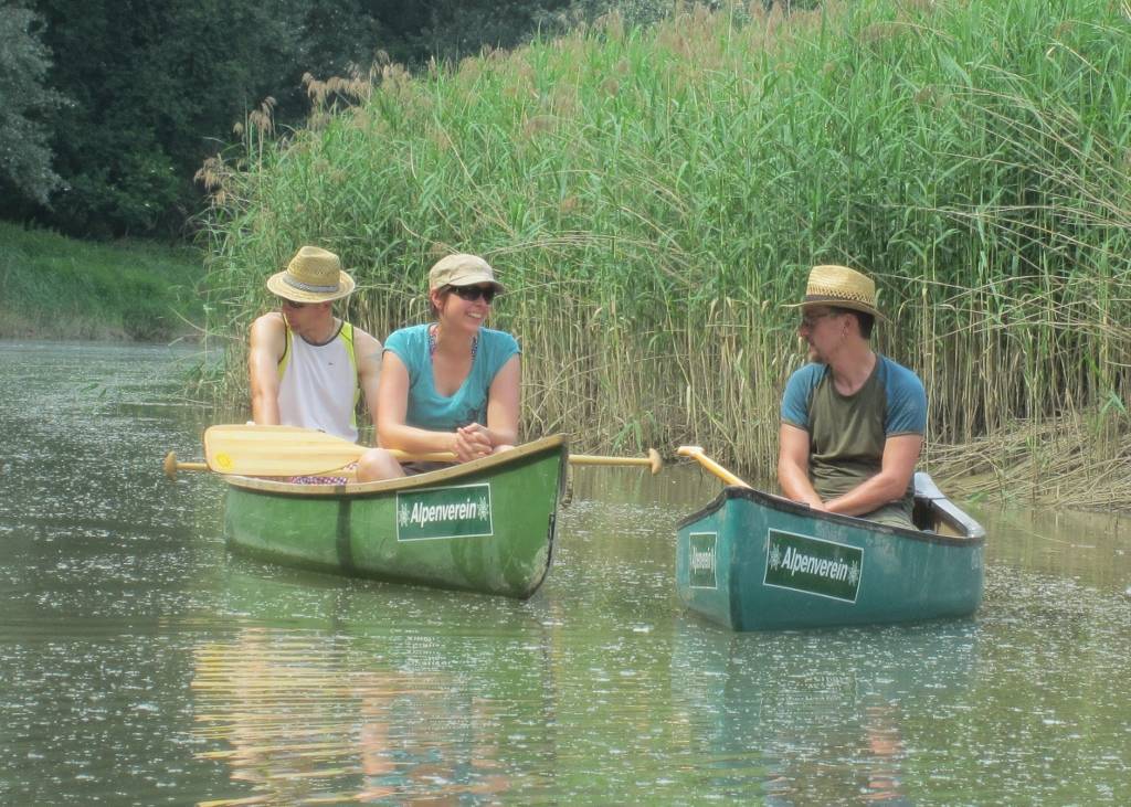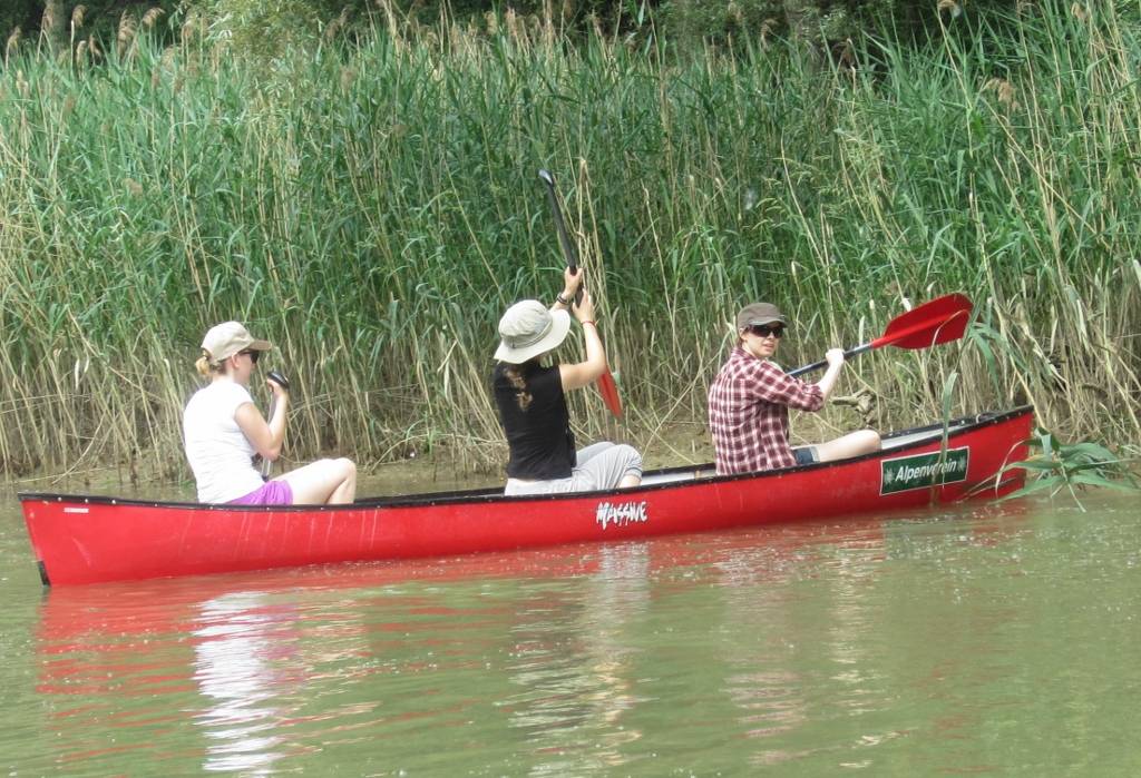 Hurtig im zick-zack ging es das Krumpenwasser (Donauauen) entlang, als FreundInnen, ReferentInnen und PartnerInnen der NÖ Naturschutzakademie zum gemeinsamen Bootsfahren unterwegs waren. Vom Baden hielten uns drohende Gewitterwolken ab, aber bis wir zu köstlichen Grillspeisen im Augasthaus Konrad eintrafen, hatte sich wieder allseits Heiterkeit durchgesetzt.