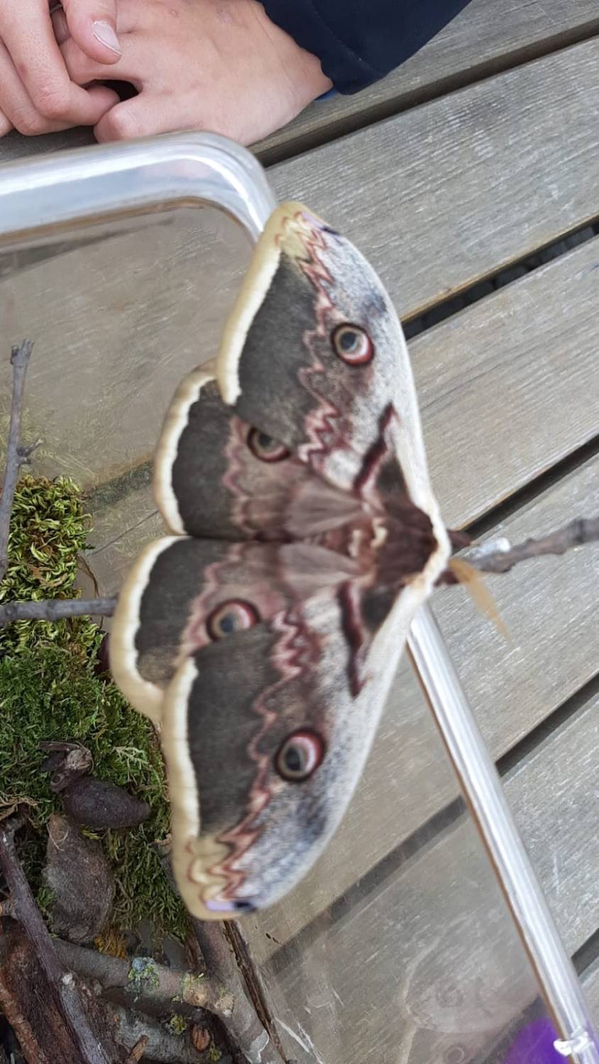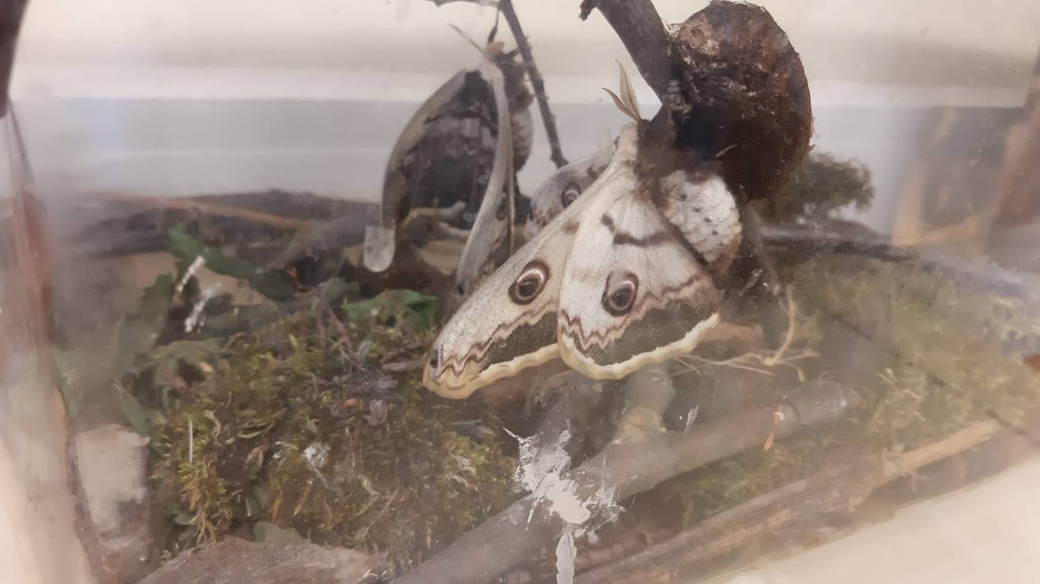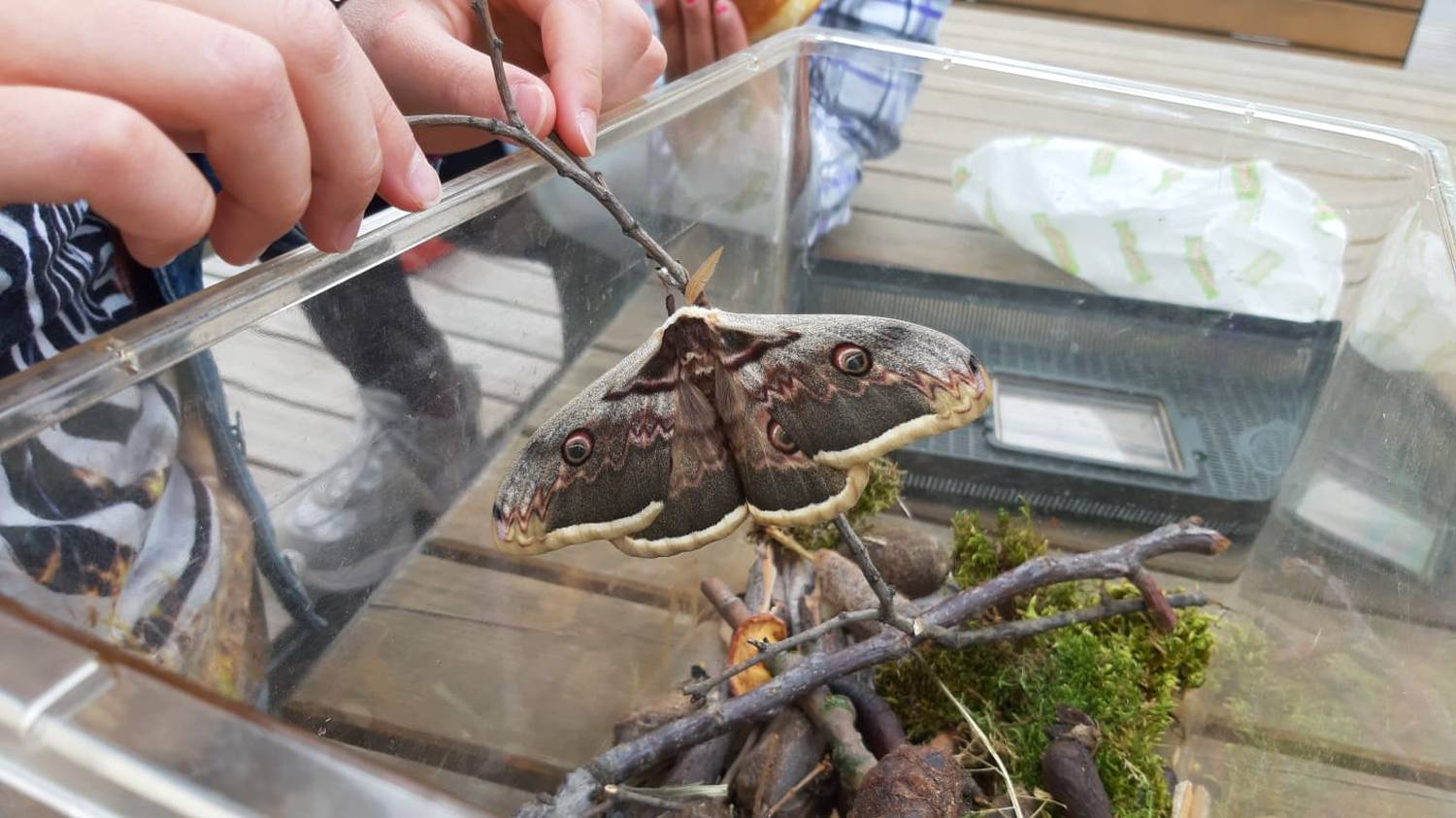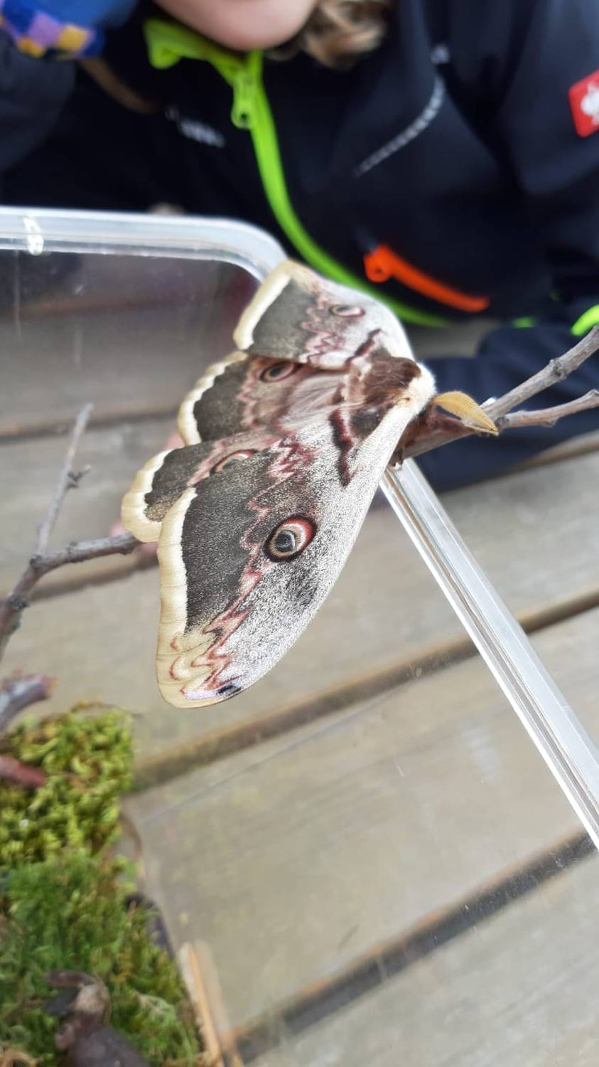 Gleich zwei Wiener Nachtpfauenaugen sind an einem Tag geschlüpft! Die Kinder sind erstaunt und begeistert als sie den ersten Falter entdecken: „Der hat einen kuscheligen Körper!“