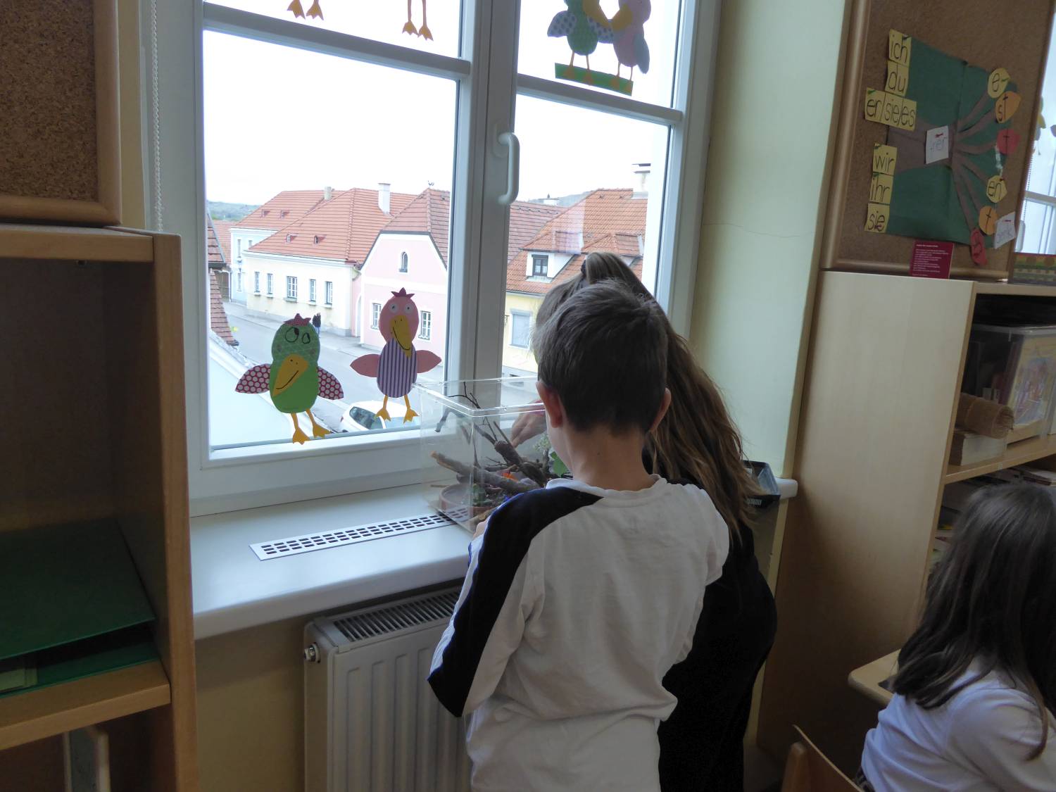 Wie viele Puppen haben die Schüler*innen in Rohrendorf gerade zu betreuen? Sie wissen es ganz genau: Sechs Stück, denn zwei sind ja schon geschlüpft. Da sind Freude und Begeisterung groß, dass sie heute gleich noch 19 weitere Puppen bekommen. Jedes Kind darf eine Puppe ins Puppenhaus legen, das am Ende schon ziemlich voll ist. Hoffentlich schlüpft bald der nächste Schmetterling, dass wieder mehr Platz ist!