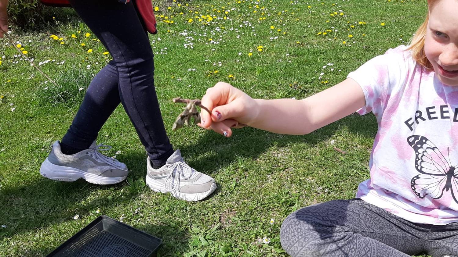 Das große Schlüpfen geht weiter in Rohrendorf: Diesmal finden die Kinder wieder einen Ligusterschwärmer im Puppenhaus!